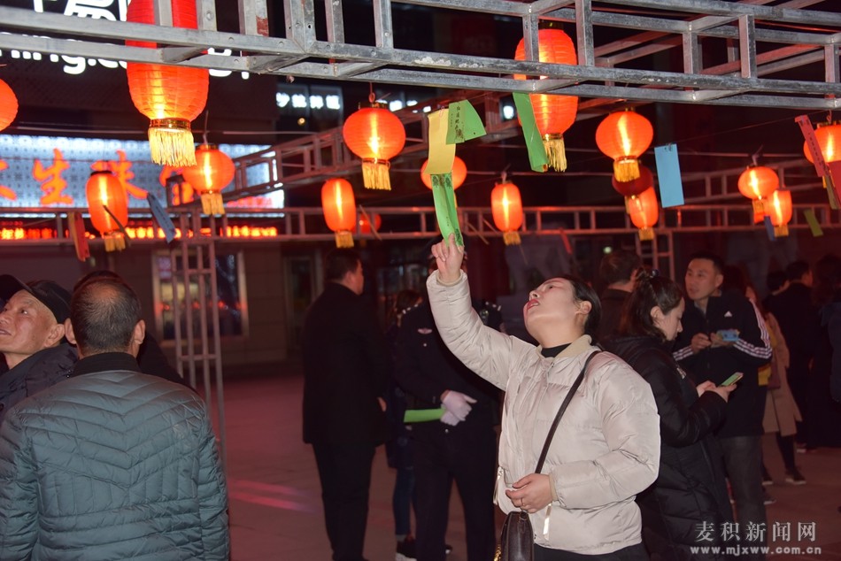 當晚,麥積區(qū)商埠路步行街人頭攢動,熱鬧非凡;面對一條條謎語,有人氣定神閑、有人冥思苦想、有人慢慢推敲......活動現(xiàn)場呈現(xiàn)出一片熱鬧祥和的節(jié)日氛圍。