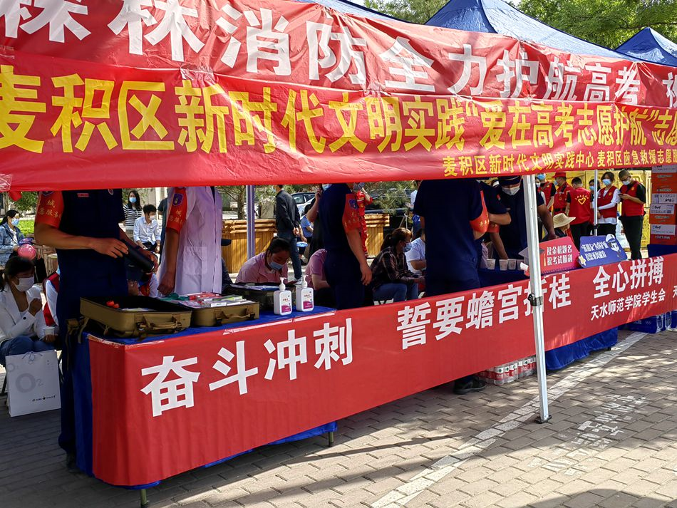 麥積區(qū)融媒體中心訊(記者 王惠萍 王瑋瑕 劉芳)6月7日,又是一年高考時(shí),十二年寒窗苦讀的考生正在高考考場迎接人生的挑戰(zhàn),而在考場的外圍,為了給考生和家長提供便民服務(wù),麥積區(qū)新時(shí)代文明實(shí)踐中心和團(tuán)區(qū)委組織愛心企業(yè)在各個(gè)考點(diǎn)設(shè)立了愛心服務(wù)站,為莘莘學(xué)子和陪考的家長免費(fèi)提供礦泉水、醫(yī)用外科口罩、防暑清涼物品等,并搭建避暑涼亭為家長提供休息的地方,用實(shí)際行動為考生加油!