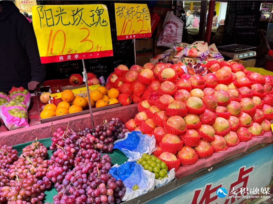 走進市場,首先映入眼簾的便是擺放整齊、色彩繽紛的水果攤。新鮮飽滿的石榴、紅彤彤的蘋果、黃澄澄的哈密瓜……應(yīng)有盡有,琳瑯滿目。攤位前,攤主們熱情地招呼著顧客,市民駐足挑選。