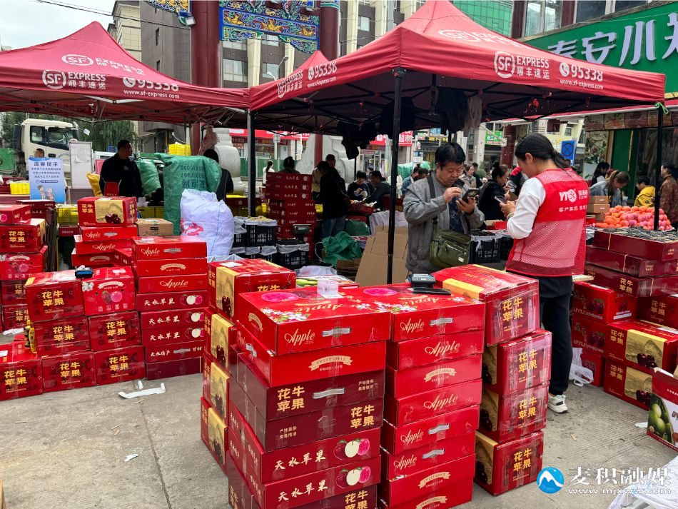 在各類熱銷的水果中,花牛蘋果最為“受寵”!巴ㄟ^本地朋友介紹,特地來這邊買點天水的花牛蘋果。臨近國慶、中秋,帶去給朋友們嘗嘗。”寧波游客陳瑞華將精心挑選的蘋果讓攤主包裝好發(fā)快遞。攤位旁邊支起的快遞便民點,既方便了本地市民和外地朋友直接選購新鮮水果,也將天水的問候傳遞給了四面八方的親朋好友。