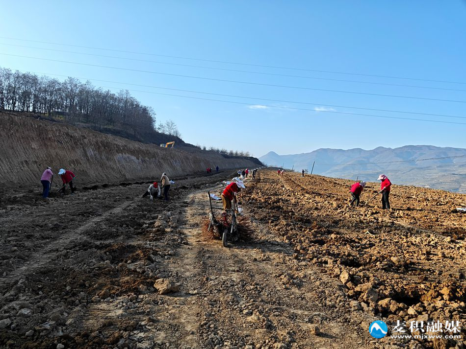 在花牛鎮(zhèn)九峪村果園改造現(xiàn)場,挖掘機(jī)轟鳴作響,翻整土地;村民們分工協(xié)作,安裝地網(wǎng)、栽植新苗、套上保溫袋、施撒肥料。與此同時(shí),現(xiàn)代化滴灌設(shè)施鋪設(shè)工作同步推進(jìn),寒冷天氣中呈現(xiàn)出一幅“冬忙”的火熱圖景。