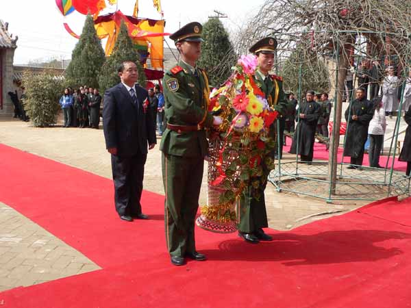 天水市市長張廣智向女媧塑像敬獻花籃