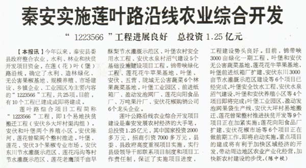 秦安實(shí)施蓮葉路沿線農(nóng)業(yè)綜合開(kāi)發(fā)