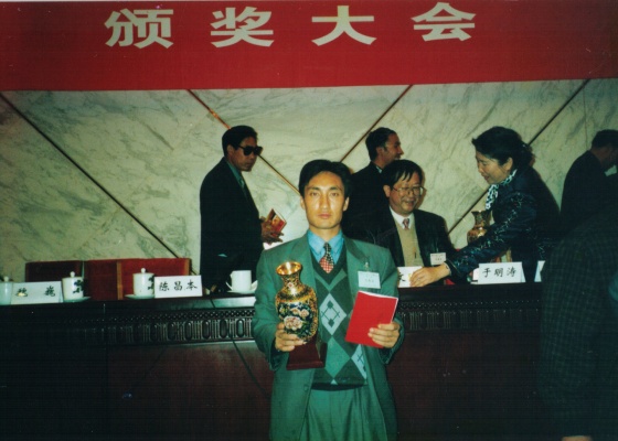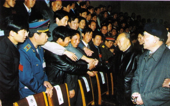 (2000年11月5日,馮喜成在北京人民大會堂參加中華大地之光頒獎大會,全國政協(xié)副主席馬文瑞接見獲獎作者,與馮喜成親切握手)