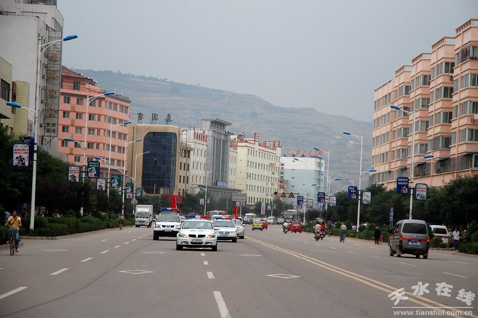 車隊(duì)在秦安縣成紀(jì)大道行進(jìn)