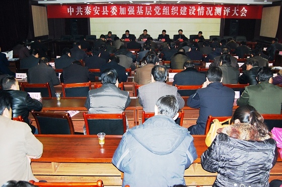 2010年1月5日,秦安縣召開縣委加強基層黨組織建設(shè)情況測評大會,主要是認真總結(jié)加強秦安縣基層黨組織建設(shè)工作的成效、特色和經(jīng)驗,查找存在的問題,提出今后工作打算,并對縣委加強基層黨建工作情況進行測評,同時安排部署各鄉(xiāng)鎮(zhèn)黨委加強基層黨組織建設(shè)的測評工作,切實查找和解決在基層黨組織建設(shè)工作中存在的突出問題,進一步推動全縣基層黨組織的全面發(fā)展和第三批學(xué)習(xí)實踐活動的深入開展。會議由縣委副書記程江芬主持。縣委書記陳天雄報告了縣委加強基層黨組織建設(shè)工作。參會人員對縣委加強基層黨組織建設(shè)情況進行了測評。