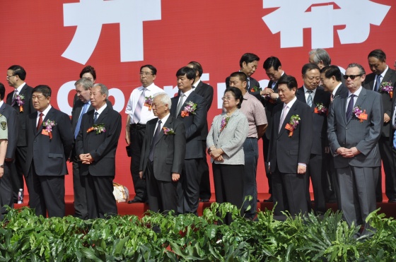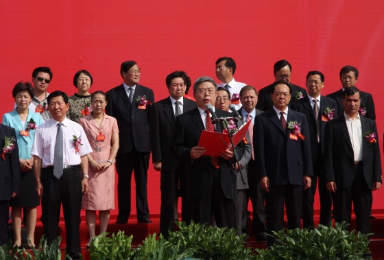 十一屆全國(guó)人大副委員長(zhǎng)周鐵農(nóng)、十屆全國(guó)人大副委員長(zhǎng)顧秀蓮?fù)境鱿_幕式。周鐵農(nóng)副委員長(zhǎng)宣布第十六屆蘭洽會(huì)開幕。