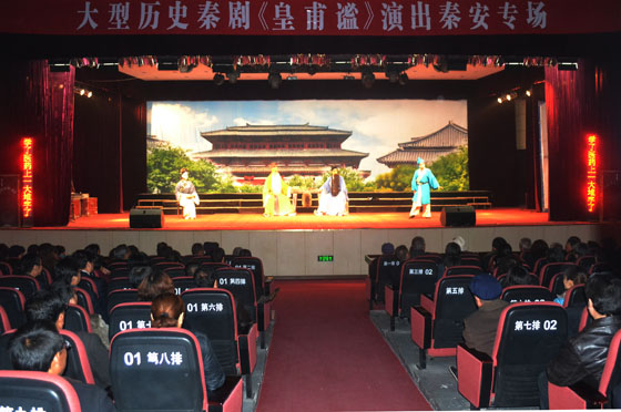 3月31日晚,由國(guó)家中醫(yī)藥管理局、甘肅省人民政府聯(lián)合策劃,甘肅省衛(wèi)生廳、省文化廳、省文聯(lián)及平?jīng)鍪形、市政府、靈臺(tái)縣委、縣政府承辦,靈臺(tái)縣秦劇團(tuán)創(chuàng)排的新編歷史秦劇《皇甫謐》,在秦安縣行政辦公中心二樓禮堂隆重上演。