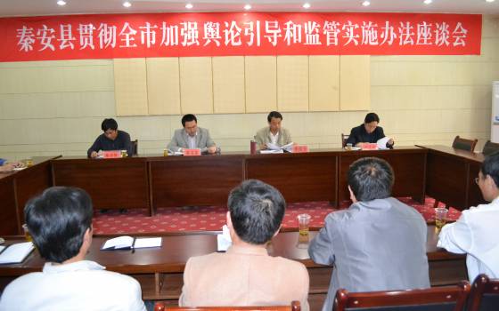 5月24日,秦安縣貫徹全市加強(qiáng)輿論引導(dǎo)和監(jiān)管實(shí)施辦法工作座談會(huì)在行政中心二樓會(huì)議室召開?h委常委、宣傳部長(zhǎng)李尚平,縣直有關(guān)部門負(fù)責(zé)同志共30多人參加座談會(huì)。