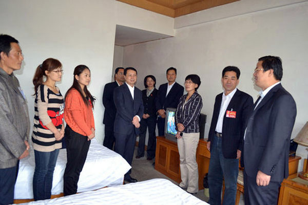 每到一處,縣四大組織領(lǐng)導(dǎo)與出席黨代會(huì)的代表們一一握手,致以親切慰問(wèn),并詳細(xì)詢問(wèn)了代表們的工作、生活情況,對(duì)他們的辛勤工作和為全縣經(jīng)濟(jì)社會(huì)發(fā)展所做的貢獻(xiàn)表示衷心感謝。王東紅指出,本次大會(huì)是在全縣上下積極實(shí)施“11132”發(fā)展戰(zhàn)略,努力實(shí)現(xiàn)“十二五”發(fā)展良好開(kāi)局的關(guān)鍵時(shí)刻,召開(kāi)的一次承前啟后、繼往開(kāi)來(lái)的重要會(huì)議,是全縣人民政治生活中的一件大事、喜事。各位代表來(lái)自各行各業(yè),肩負(fù)全縣黨員干部的希望和重托。大家要以飽滿的政治熱情和良好的精神狀態(tài)參加大會(huì),圓滿完成大會(huì)確定的各項(xiàng)任務(wù)。