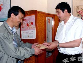 為了深入開展“聯(lián)村聯(lián)戶、為民富民"活動(dòng),以實(shí)際行動(dòng)投身聯(lián)村聯(lián)戶、為民富民行動(dòng),展示工商系統(tǒng)開展為民服務(wù)創(chuàng)先爭優(yōu)活動(dòng)的成效。6月25 日下午,甘肅省工商局聯(lián)和西雅衣家(中國)商業(yè)有限公司在秦安縣千戶鄉(xiāng)政府大院內(nèi)舉行捐贈(zèng)活動(dòng)。參加捐贈(zèng)儀式的嘉賓有:省工商局黨組成員紀(jì)檢組長李平安、財(cái)審處處長余新立等一行6人、縣人大副主任劉小琴、縣工商局局長馬念平、千戶鄉(xiāng)政府全體領(lǐng)導(dǎo)班子、鄉(xiāng)村干部及千戶鄉(xiāng)曹灣村、千戶村、天城堡村部分受贈(zèng)村民,共120余人參加了捐贈(zèng)活動(dòng)。捐贈(zèng)儀式由鄉(xiāng)黨委書記馮銀才主持。