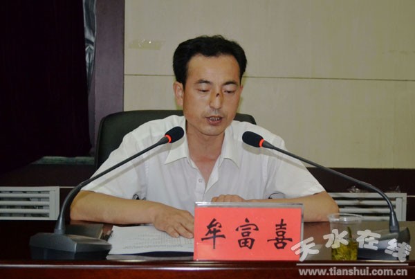 縣紀(jì)委副書記、監(jiān)察局局長魏子成宣讀《秦安縣2012年效能風(fēng)暴行動(dòng)民主評(píng)議機(jī)關(guān)作風(fēng)和政風(fēng)行風(fēng)工作實(shí)施方案》