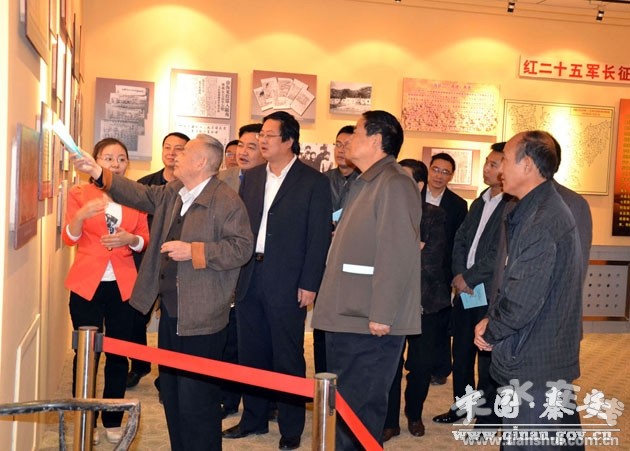 9月26日,省上老領(lǐng)導(dǎo)竇述一行,在市委老干部局副局長張平緒,市委老干部局辦公室副主任羅逢春,秦安縣委書記王東紅,縣委副書記裴貴軍,縣委常委、興國鎮(zhèn)黨委書記楊喜春,及縣委辦、縣委老干部局、縣檢察院、縣文廣局相關(guān)部門負(fù)責(zé)人陪同下,專程前往秦安解放紀(jì)念館,秦安鳳山公園,大地灣史前遺址博物館進(jìn)行調(diào)研。