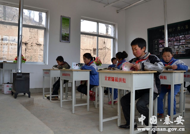 (陽灣小學(xué)的孩子們在新修的教室里看書)