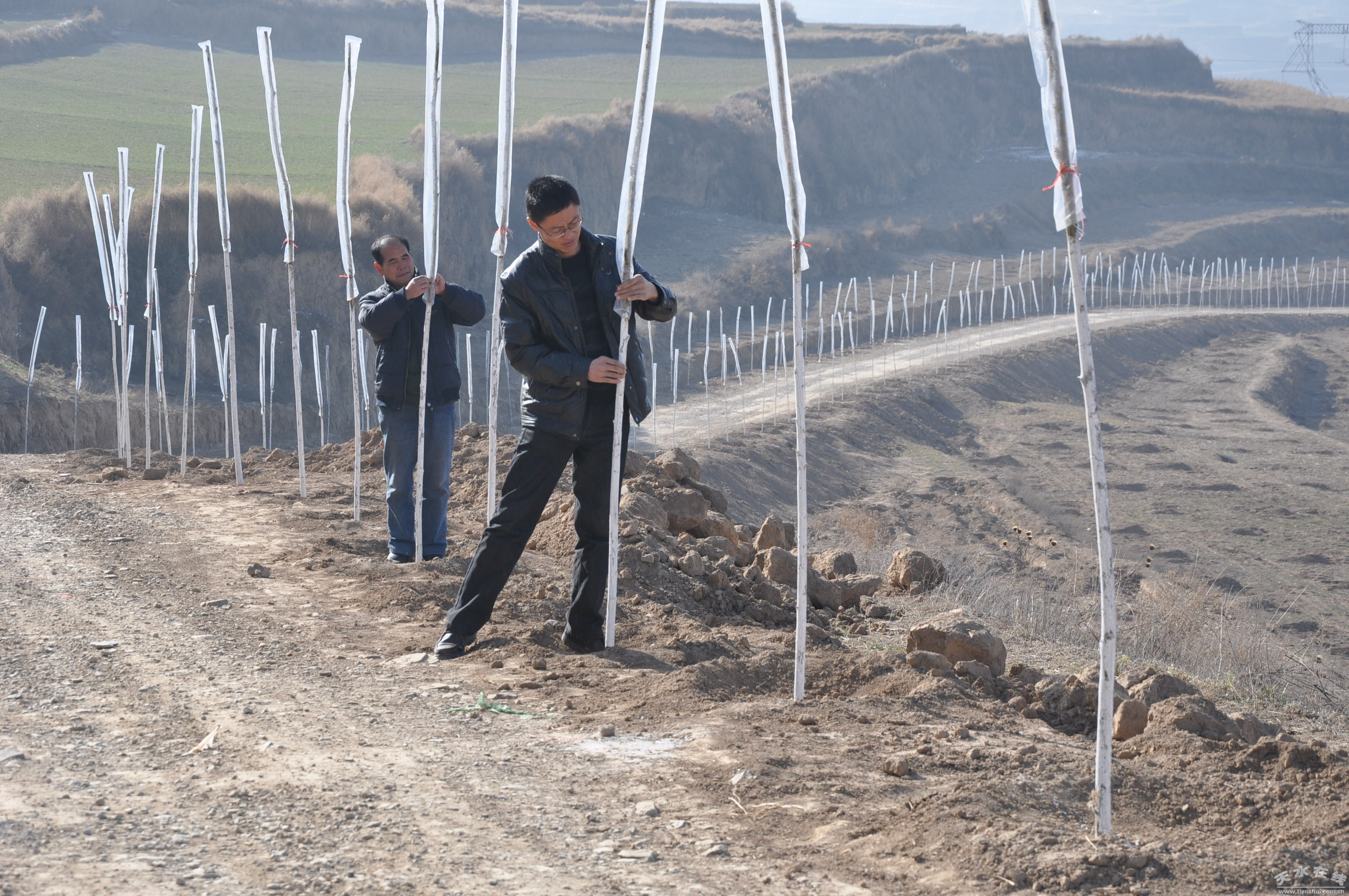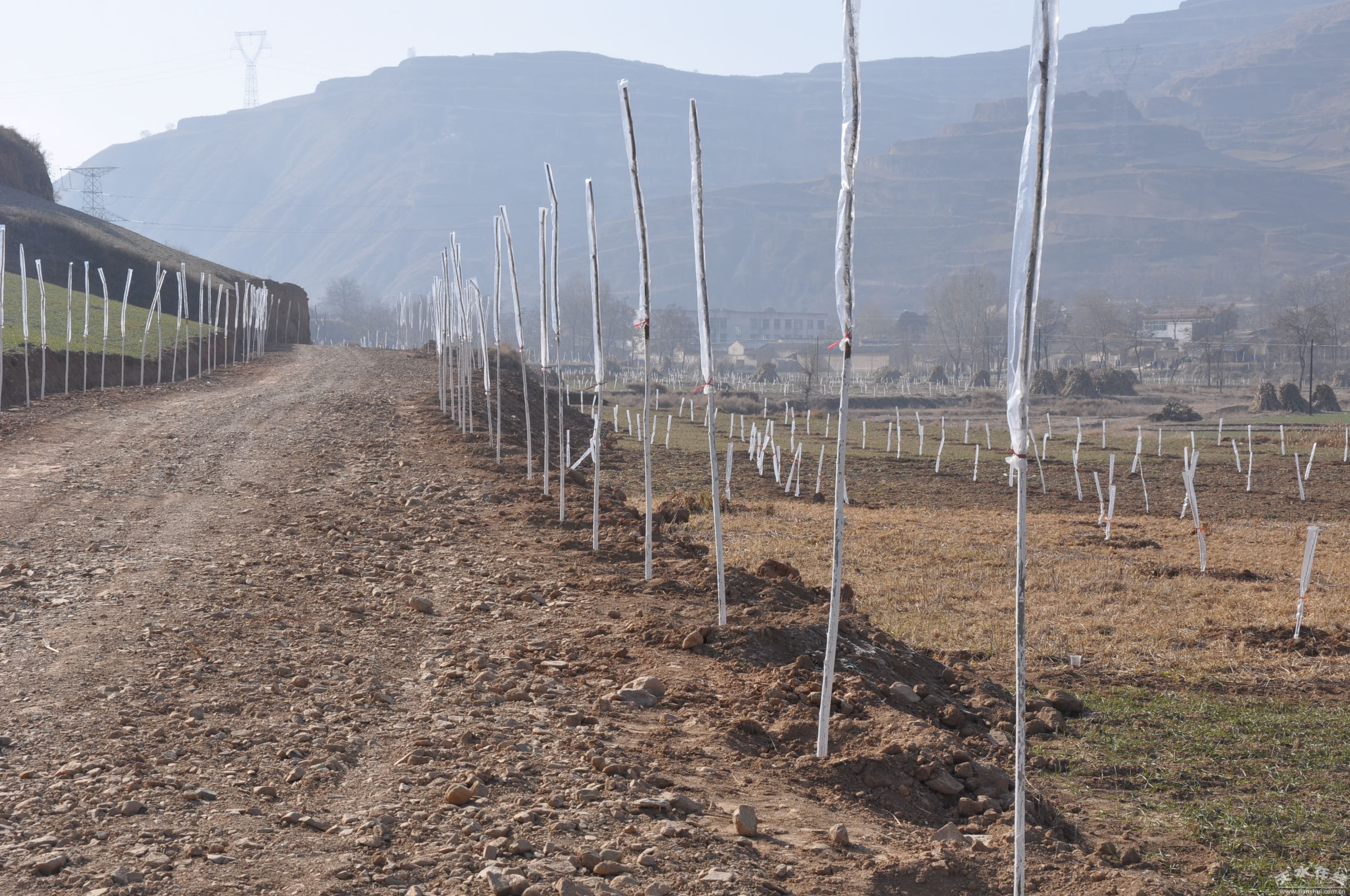 12月8 日,驅(qū)車從五營柏油路入口,再到臥牛坪優(yōu)質(zhì)果園梁頂,再到另一出口,真正感受到臥牛坪優(yōu)質(zhì)果園基地被一條長長的環(huán)形路所包圍。陪同采訪的鄉(xiāng)黨委書記孫中平告訴記者,這條路是配合臥牛坪優(yōu)質(zhì)果園基地新修的,路面寬8 米,長12公里,大大方便建園和平時(shí)作務(wù)。同時(shí)按照可持續(xù)發(fā)展的思路,達(dá)到生態(tài)效益和經(jīng)濟(jì)效益一致,產(chǎn)業(yè)路兩旁共栽植金絲柳7000棵,每2、5米一棵。當(dāng)天,還有不少村民自管自護(hù),給新栽的金絲柳穿保溫袋?吹贸鰪V大群眾打造自己生態(tài)家園的熱情。