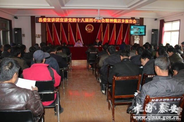 為了深入貫徹落實(shí)黨的十八屆四中全會(huì)精神,按照縣委的統(tǒng)一安排部署,縣委十八屆四中全會(huì)精神宣講團(tuán)于12月2日走進(jìn)魏店進(jìn)行專題輔導(dǎo)。魏店鄉(xiāng)全體鄉(xiāng)村兩級(jí)干部、鄉(xiāng)屬單位負(fù)責(zé)人共200余人參加了宣講會(huì),。
