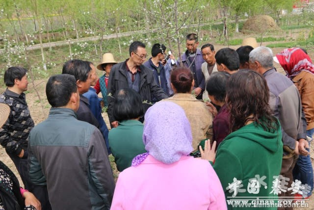 盡管已是農(nóng)忙時(shí)節(jié),上述14個(gè)村的培訓(xùn)中,從興國(guó)鎮(zhèn)康坡村、劉坪鄉(xiāng)大灣村、蓮花鎮(zhèn)馮溝村、五營(yíng)鄉(xiāng)徐洼村、郭嘉鎮(zhèn)槐廟村,到魏店鄉(xiāng)魏坡村、千戶鄉(xiāng)永安村、王鋪鄉(xiāng)梁峴村,無(wú)論是老牌果樹大鄉(xiāng),還是起步較晚的鄉(xiāng)鎮(zhèn),農(nóng)民群眾對(duì)果園管理技術(shù)的渴盼與需求絲毫沒有受到影響,其中不少果園管理者是農(nóng)村留守婦女,在她們的語(yǔ)言中,也有著正宗的關(guān)于的果樹的“官方術(shù)語(yǔ)”。培訓(xùn)現(xiàn)場(chǎng),縣果業(yè)局高俊商、程進(jìn)成、安六世、李建偉、李鋒等老師,被果農(nóng)從一家果園拉向另一家果園“看樹形”、“看病害”,對(duì)存在的問題求方法、求指導(dǎo),成為“顏值”最高、“人氣”最旺的教師。