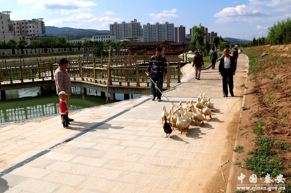近年來,秦安縣大力實(shí)施葫蘆河城區(qū)段生態(tài)治理工程,目前一、二期工程已經(jīng)完工,建成了3個(gè)文化廣場、2個(gè)健身休閑廣場、3個(gè)籃球場、3個(gè)羽毛球場和1個(gè)網(wǎng)球場;建成了6個(gè)人工水域和2條3公里長的園路;共栽植喬、灌、花各類景觀苗木30多種、20余萬株。正在實(shí)施的三期工程,以大片水體營造“親水近水”人文環(huán)境,與園林景觀綠化建設(shè)相互交融,建設(shè)具有現(xiàn)代園林特色的葫蘆河生態(tài)景觀區(qū)。