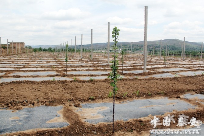 秦安縣綠野種植專業(yè)合作社在該示范點集中流轉(zhuǎn)土地341畝,目前已栽植昌紅富士、煙富3號、秦冠短枝、金世紀等優(yōu)質(zhì)蘋果苗木1.85萬株,建成了一處密植立柱、肥水一體,具有防御自然災害功能的優(yōu)質(zhì)豐產(chǎn)示范果園!拔覀儑腊岩(guī)劃設計、苗木調(diào)運、技術培訓、整地栽植、覆膜套種、后續(xù)管理、檢查驗收等“七關”,確保了果園高起點定位、高標準規(guī)劃、高質(zhì)量施工和精細化管理!痹摵献魃缲撠熑笋T育學說。