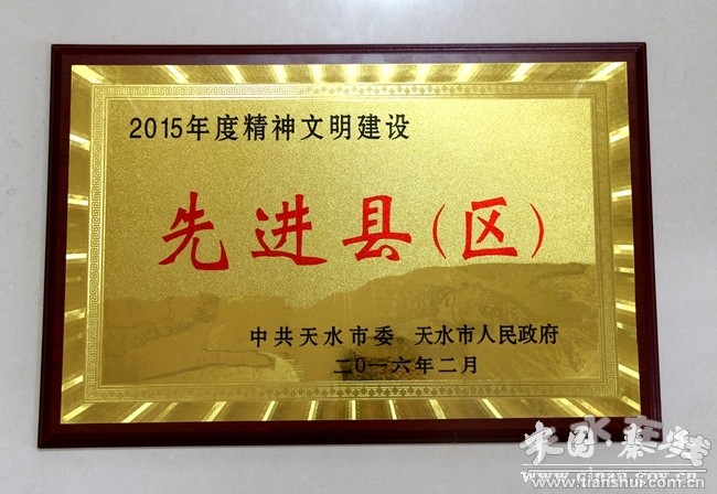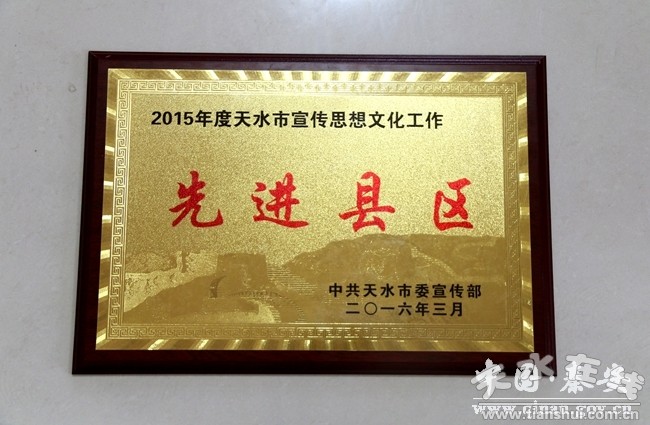 3月2日,在全市宣傳思想工作會(huì)議上,秦安縣榮獲2015年度全市精神文明建設(shè)先進(jìn)縣區(qū)和2015年度全市宣傳思想文化工作先進(jìn)縣區(qū),由秦安縣委宣傳部策劃組織的“相約桃鄉(xiāng)秦安·感受美麗田園”旅游采風(fēng)活動(dòng)榮獲2015年度全市宣傳思想文化工作特色創(chuàng)新獎(jiǎng),秦安縣第二中學(xué)、縣教體局、縣司法局榮獲市級(jí)文明單位,秦安縣王尹鎮(zhèn)榮獲市級(jí)文明鄉(xiāng)鎮(zhèn),秦安縣劉坪鄉(xiāng)大灣村、劉坪鄉(xiāng)黃灣村、王尹鎮(zhèn)胡坪村、興國(guó)鎮(zhèn)康坡村榮獲市級(jí)文明村,秦安縣興國(guó)鎮(zhèn)南關(guān)社區(qū)榮獲市級(jí)文明社區(qū)。