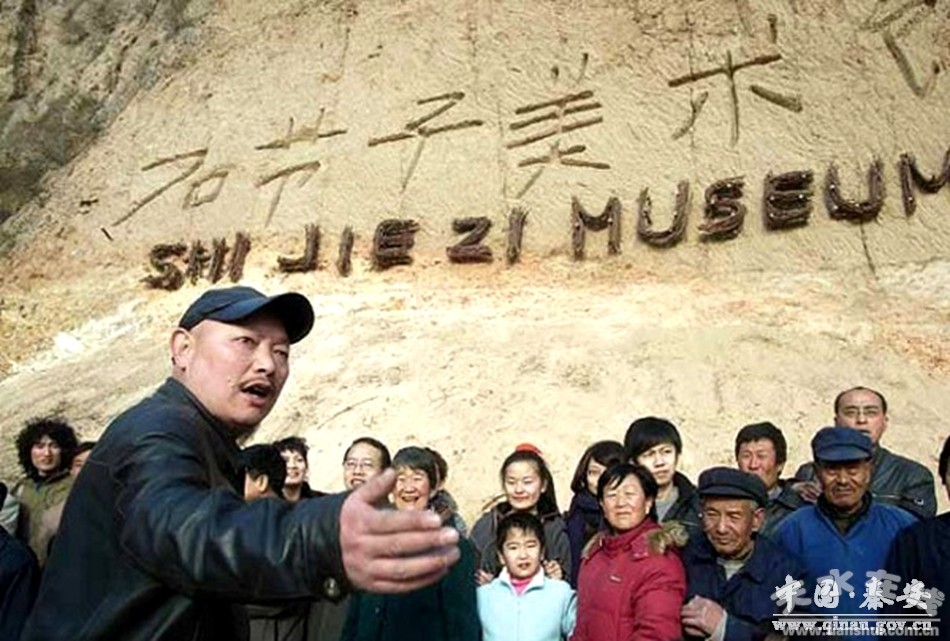 這種情況直到2009年正月初九“石節(jié)子美術(shù)館”成立后發(fā)生了改變。這個(gè)聽(tīng)起來(lái)富有藝術(shù)氣息的名字,就刻在通往縣城的山路旁邊高高的土崖上,是靳勒不識(shí)字的母親用柴棍子畫(huà)出來(lái)的,沒(méi)有任何裝飾,下面是用桃木枝條編織而成的英文譯名。在不少村民家,充滿(mǎn)藝術(shù)意味的影像,和傳統(tǒng)的年畫(huà)懸掛在一起。土房、爬滿(mǎn)青苔的院墻,呈現(xiàn)著石節(jié)子村各具特色的景象。靳勒的設(shè)想是,一戶(hù)人家就是一個(gè)分館。比如靳女女家,可以叫“女女館”,李寶元家也可以稱(chēng)“寶元館”,甚至山上的一塊塊地,“也是美術(shù)館的一部分”。能讓更多的人關(guān)注石節(jié)子村,這是靳勒的目的。靳勒試圖用藝術(shù)的方式給村莊帶來(lái)一些改變。他已經(jīng)在村莊之外走了很遠(yuǎn)的腳步又聽(tīng)從他內(nèi)心的召喚走回了村莊。這也是中國(guó)第一個(gè)以整體自然村為單位的美術(shù)館。