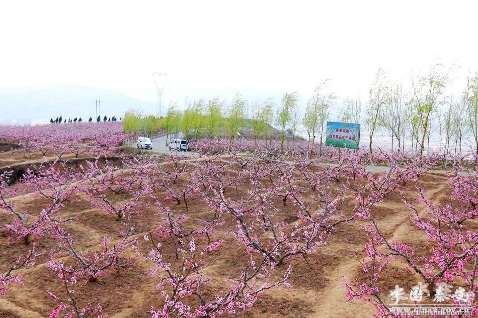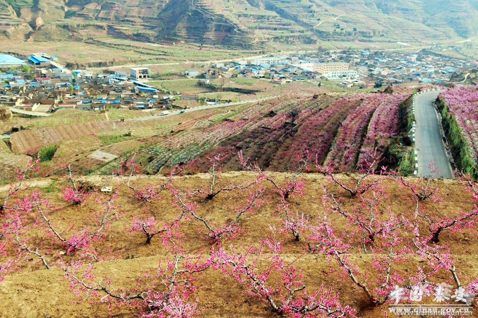桃花是秦安縣的一道靚麗的風(fēng)景,早在唐宋時(shí)期,“齊桃”、“二格子桃”和“秋桃”就以個(gè)大、色艷、味美而遠(yuǎn)近聞名。相傳,唐太宗李世民在病中想吃故鄉(xiāng)的蜜桃,專(zhuān)門(mén)派遣使者快馬兼程到秦安采摘,從此秦安蜜桃被作為朝廷貢品,名揚(yáng)四海。北宋時(shí)期秦安就有“城北十里桃花川”之說(shuō)。長(zhǎng)期的蜜桃栽培,在葫蘆河流域形成了自興國(guó)鎮(zhèn)廟咀村到郭嘉鎮(zhèn)邵咀村全長(zhǎng)30余公里的數(shù)萬(wàn)畝桃園。