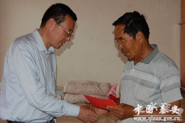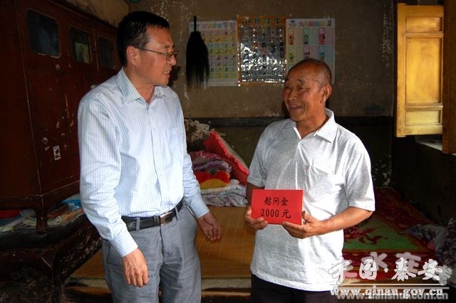 在建黨95周年來臨之際,秦安縣人大常委會(huì)黨組書記、主任郭海軍,前往王尹鎮(zhèn)王川、尹川等村,看望慰問了老黨員王平生和困難黨員李繼忠,為他們帶去了黨的關(guān)懷和問候,并給他們送去了慰問金。