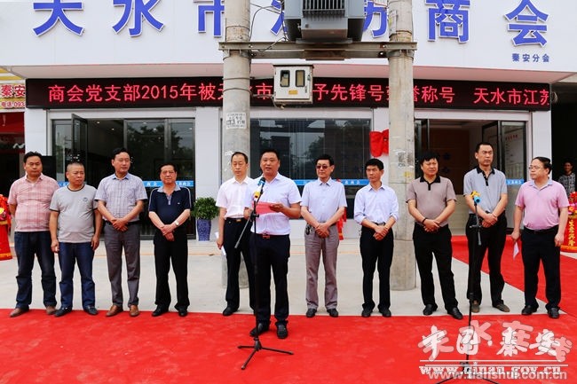 縣人大常委會(huì)副主任陳秦生,天水江蘇商會(huì)會(huì)長柏傳祥為商會(huì)揭牌,市工商聯(lián)副主席蔡建春主持揭牌儀式。