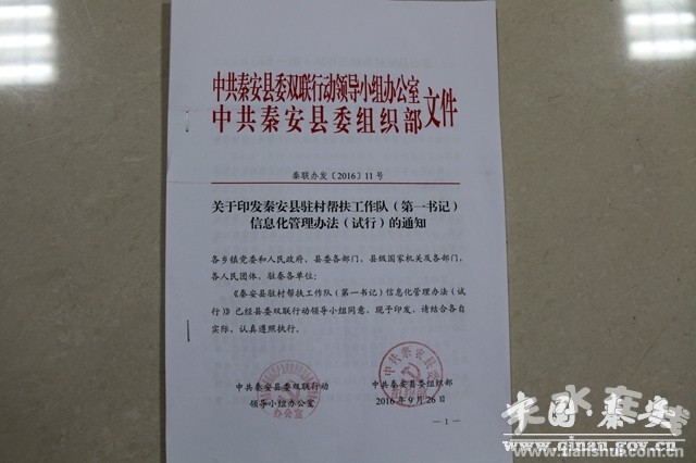 《秦安縣駐村幫扶工作隊(duì)(第一書記)信息化管理辦法(試行)》對(duì)駐村幫扶工作隊(duì)員的工作開展、日常管理、考核獎(jiǎng)懲等提出明確要求,駐村幫扶工作隊(duì)員要定期完成數(shù)據(jù)動(dòng)態(tài)維護(hù),總結(jié)上傳、信息報(bào)送等工作;每周至少向鄉(xiāng)鎮(zhèn)黨委報(bào)送駐村幫扶工作開展情況一次,工作動(dòng)態(tài)信息應(yīng)如實(shí)反映駐村幫扶工作開展情況,重點(diǎn)反映到戶開展工作情況,交流經(jīng)驗(yàn)做法。