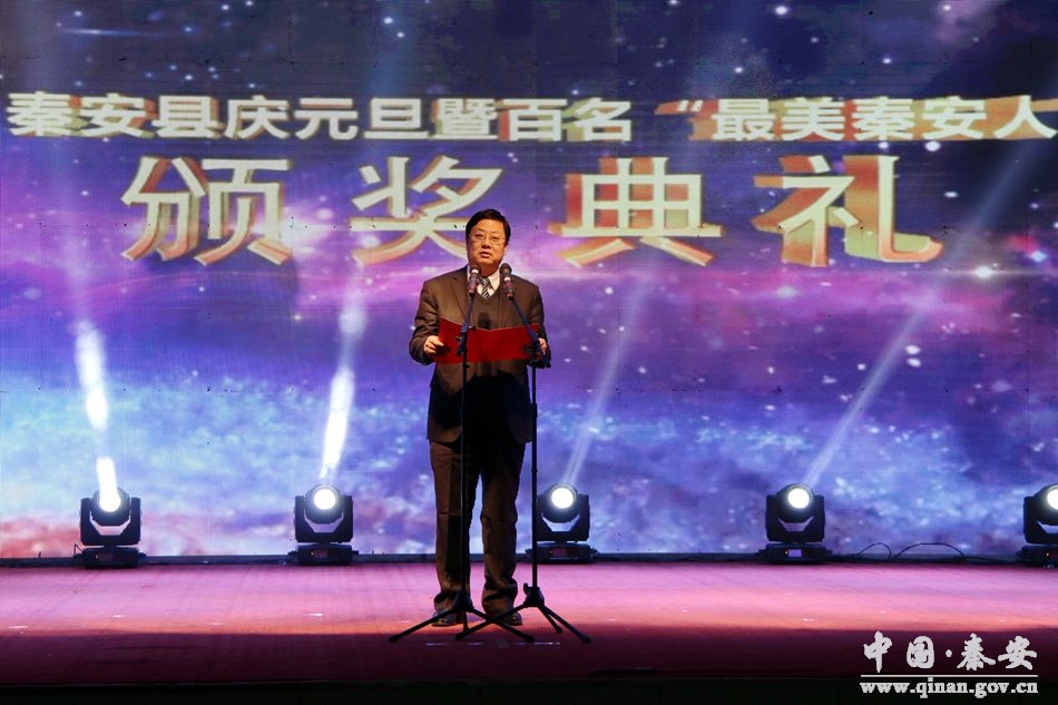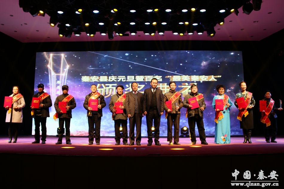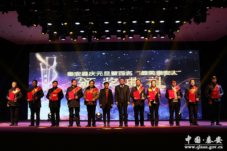 12月30日,秦安縣行政中心二樓禮堂彩燈高照,熱鬧非凡,秦安縣慶元旦暨百名“最美秦安人”頒獎(jiǎng)典禮在這里舉行。來自社會(huì)各階層的150名“最美秦安人”和“最美秦安人”提名獎(jiǎng)獲得者受到表彰。本次頒獎(jiǎng)典禮由中共秦安縣委、秦安縣人民政府主辦 ,縣委宣傳部、縣文明辦、縣委外宣辦、縣文廣局、縣廣播電視臺(tái)承辦。
