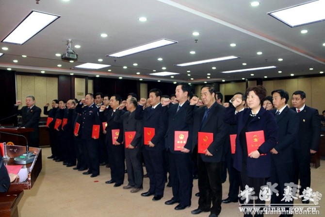 12月30日,在秦安縣第十八屆人大常委會第一次會議上,縣人大常委會舉行了新任命人員憲法宣誓儀式。在這次常委會上,縣人民檢察院檢察長,新任命的23名縣政府工作部門負責人,縣十八屆人大常委會代表資格審查委員會成員,1名縣人大專門委員會副主任委員和10名縣人大常委會工作部門負責人莊嚴地向憲法宣誓。