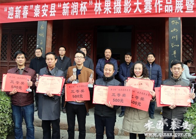 1月16日,秦安縣迎新春“新潤杯”林果攝影大賽作品展暨頒獎儀式在縣興國寺舉行?h委常委、宣傳部長徐東明,縣人大常委會副主任張耀清,縣政府副縣長于劍鋒,縣委宣傳部、縣文廣局、縣文聯(lián)、縣委外宣辦、縣果業(yè)局、縣商務(wù)局、縣攝影家協(xié)會、秦安縣眾鼎電子商務(wù)有限責(zé)任公司等單位負(fù)責(zé)人以及廣大攝影愛好者參加了頒獎儀式。