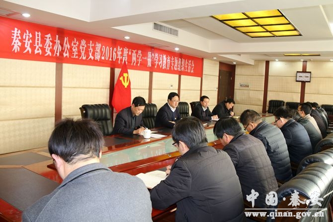 1月23日,秦安縣委辦公室黨支部召開2016年度“兩學一做”學習教育專題組織生活會?h委書記王東紅,副書記裴貴軍以普通黨員身份參加?h委組織部有關(guān)負責同志應邀指導會議。