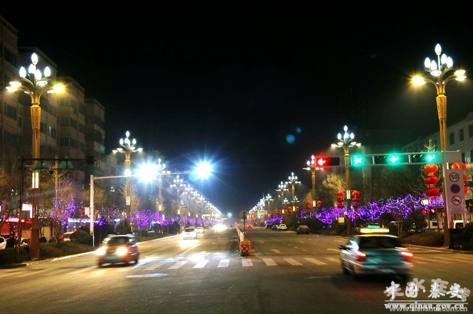 新春佳節(jié)即將來臨,秦安城區(qū)盞盞火紅的大紅燈籠高高掛起,一排排、一串串,一派紅彤彤、喜洋洋的景象。夜幕降臨,道路兩旁典雅的路燈和多彩的LED燈交相輝映,加上璀璨流動(dòng)的車燈,寬闊的道路頓時(shí)成了燈的海洋,絢麗多彩,美不勝收;特別是鳳山景區(qū)花燈璀璨、火樹銀花,給人以美輪美奐的視覺享受,讓穿梭在其間的人們感受到了新年的紅火與溫馨。流光溢彩的秦安夜景分外迷人,色彩豐富、點(diǎn)線結(jié)合、動(dòng)靜相宜的亮化風(fēng)景,把整個(gè)縣城裝扮一新,處處洋溢著紅火、喜慶、祥和的節(jié)日氛圍。