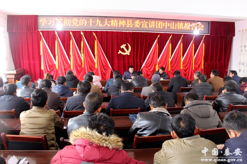 12月6日,秦安縣人大常委會主任郭海軍深入中山鎮(zhèn)宣講黨的十九大精神。中山鎮(zhèn)黨政班子成員、鎮(zhèn)村兩級干部、鎮(zhèn)屬單位負責人90余人共同聆聽了報告。