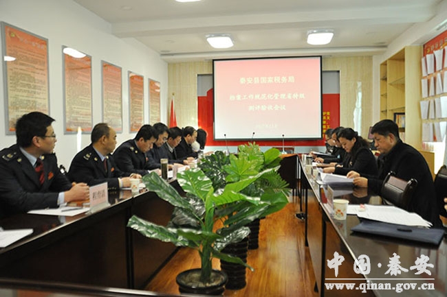 12月17日,省檔案局開發(fā)利用處調研員劉紅帶領省檔案局考核組對秦安縣檔案管理工作進行了考核,并對秦安縣國稅局創(chuàng)建省特級檔案室進行驗收。市委副秘書長李虎生、市檔案局局長陳世平、縣政府副縣長于劍鋒及相關部門負責人陪同考核。