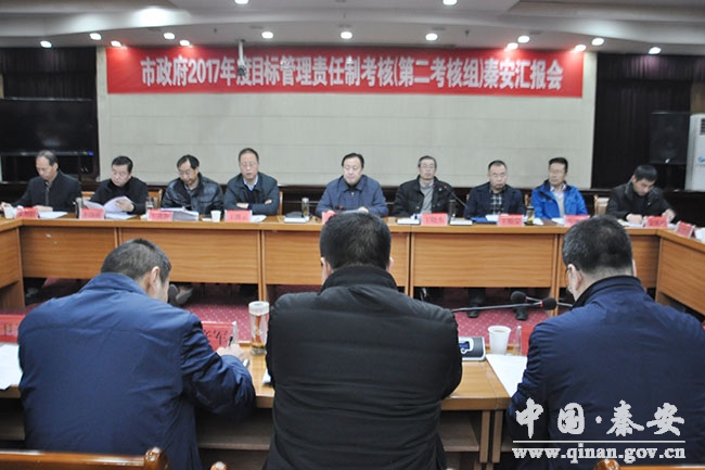 考核匯報(bào)會(huì)上,縣政府副縣長于劍鋒全面匯報(bào)了秦安縣2017年度目標(biāo)管理責(zé)任制完成情況,市政府副秘書長、外事僑務(wù)辦主任張有信就考核相關(guān)事項(xiàng)作了安排。隨后,考核組分成6個(gè)小組分別深入各自考核點(diǎn),通過實(shí)地查看、查閱資料、聽取匯報(bào)等方式,就秦安縣2017年度公共文化服務(wù)體系建設(shè)、旅游總收入增速、教育工作、綜合科技進(jìn)步水平指數(shù)、食品藥品安全、水資源管理制度落實(shí)等工作進(jìn)行了全面考核。考核組對(duì)秦安縣過去一年來的工作給予充分肯定,認(rèn)為秦安縣目標(biāo)明確,舉措得力,落實(shí)到位,成效顯著,較好地完成了市政府確定的各項(xiàng)目標(biāo)任務(wù)。