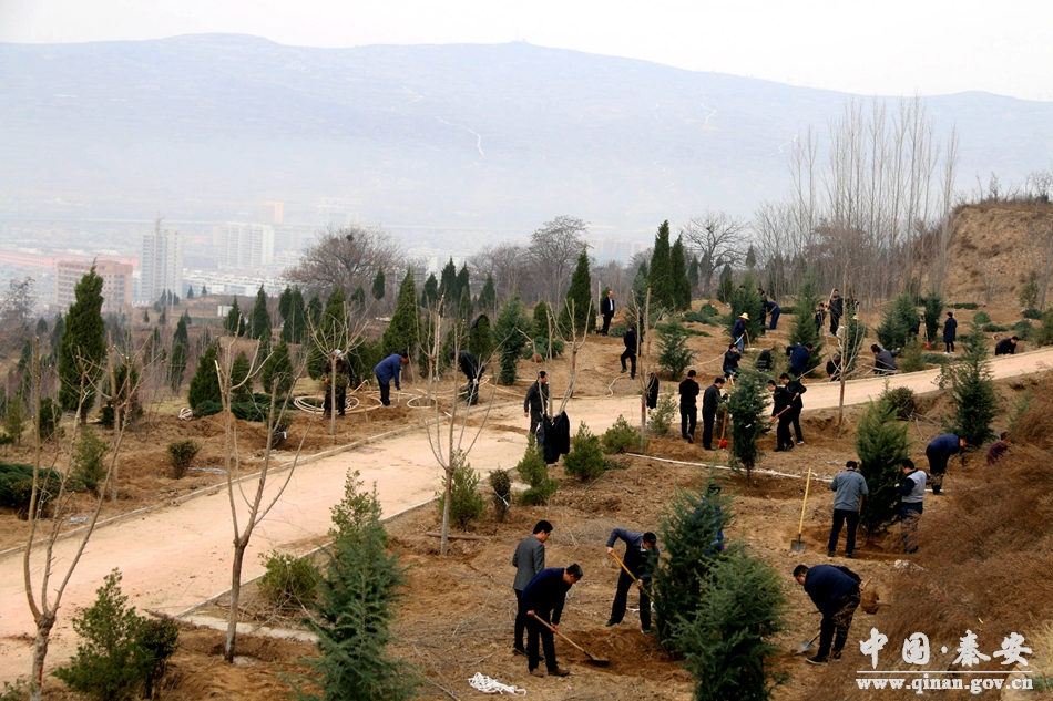 秦安縣四大組織領(lǐng)導(dǎo)在鳳山景區(qū)參加義務(wù)植樹活動(圖)