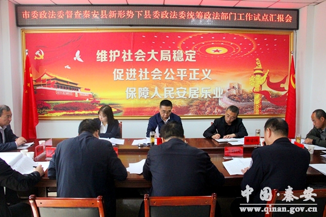 在隨后召開的匯報會上,縣委常委、政法委書記楊喜春詳細匯報了秦安縣新形勢下縣委政法委統(tǒng)籌政法部門工作試點進展情況,縣委組織部、縣法院、縣檢察院、縣公安局、縣司法局負責人分別圍繞本部門工作試點進展情況及存在的困難和問題、下一步工作試點意見建議進行了交流發(fā)言。