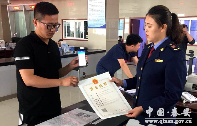 近日,秦安胡先生在縣政務(wù)大廳工商服務(wù)窗口領(lǐng)取到自己的“電子營業(yè)執(zhí)照”,高興的說:“過去辦理營業(yè)執(zhí)照需要來回跑好幾趟,現(xiàn)在推行電子營業(yè)執(zhí)照實(shí)行‘零見面’的發(fā)照模式,讓信息多跑路,群眾少跑路,真正讓咱們老百姓體驗(yàn)到了政務(wù)服務(wù)‘最多跑一次’的工作目標(biāo)。”