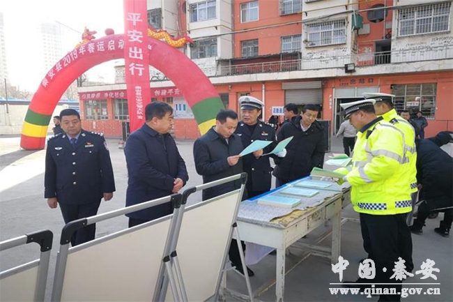 會(huì)后,縣上領(lǐng)導(dǎo)和相關(guān)單位負(fù)責(zé)人到縣汽車北站參加了秦安縣2019年春運(yùn)啟動(dòng)儀式,并就春運(yùn)期間道路交通安全集中宣傳、客運(yùn)車輛管理運(yùn)營(yíng)、車輛安全技術(shù)性能等情況進(jìn)行現(xiàn)場(chǎng)查看。