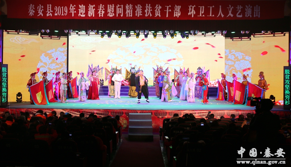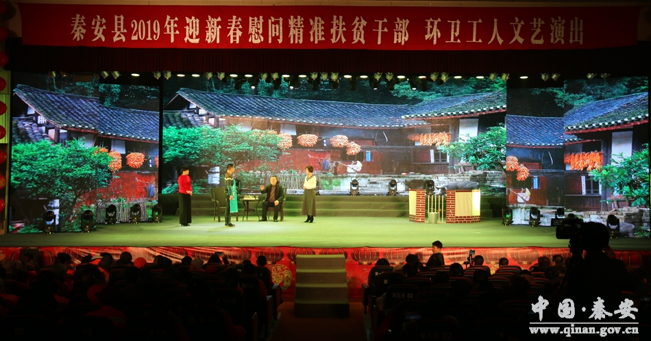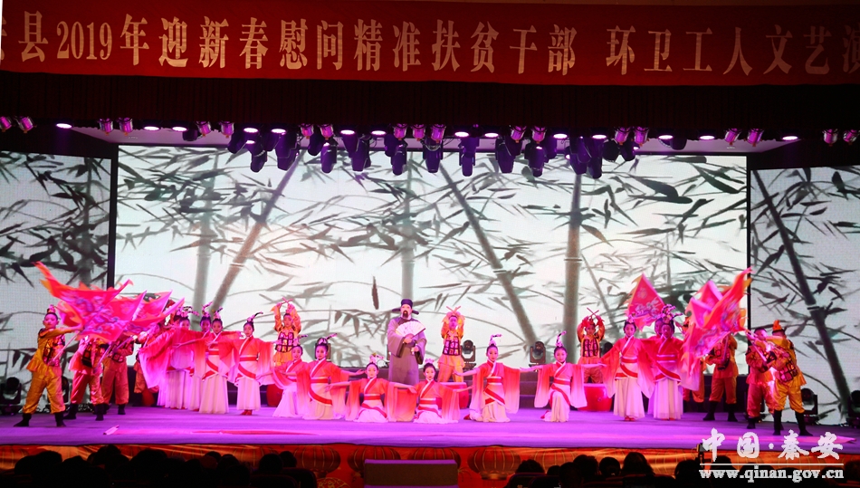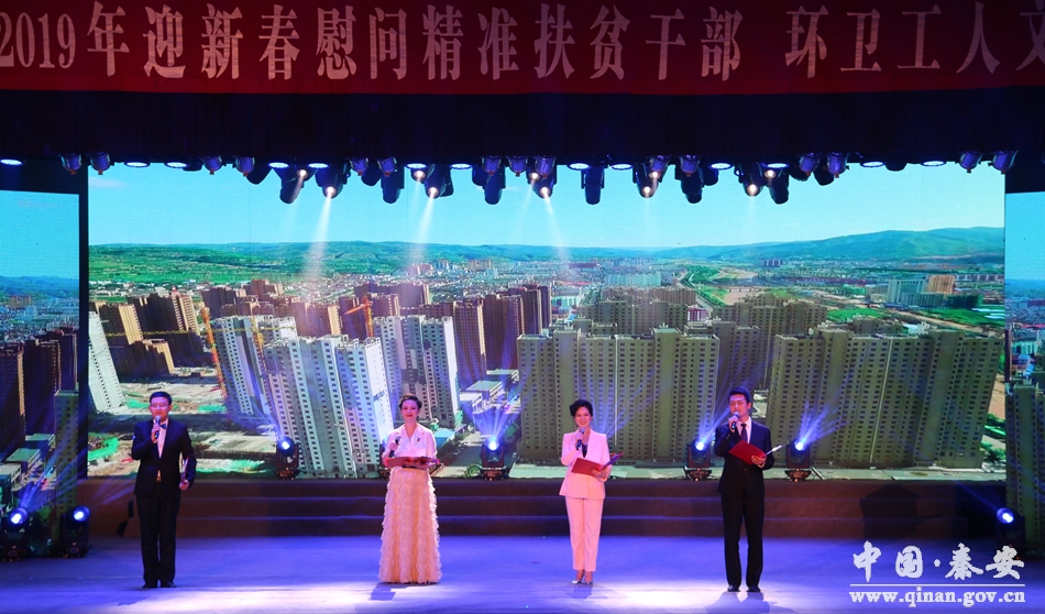 1月27日,由中共秦安縣委、縣政府主辦,縣委宣傳部、縣文廣局承辦的2019年迎新春慰問扶貧干部、環(huán)衛(wèi)工人文藝匯演在縣行政中心二樓禮堂舉行。縣領(lǐng)導(dǎo)郭海軍、徐東明、文斌、張榮生,農(nóng)業(yè)、宣傳、教育、文化、城建等部門單位負(fù)責(zé)人,駐村幫扶工作隊隊長,環(huán)衛(wèi)工人代表,各鎮(zhèn)、縣直部門、單位干部職工代表,駐秦單位代表等600余人一同觀看了文藝演出。演出伊始,縣委常委、宣傳部部長徐東明作了致辭。