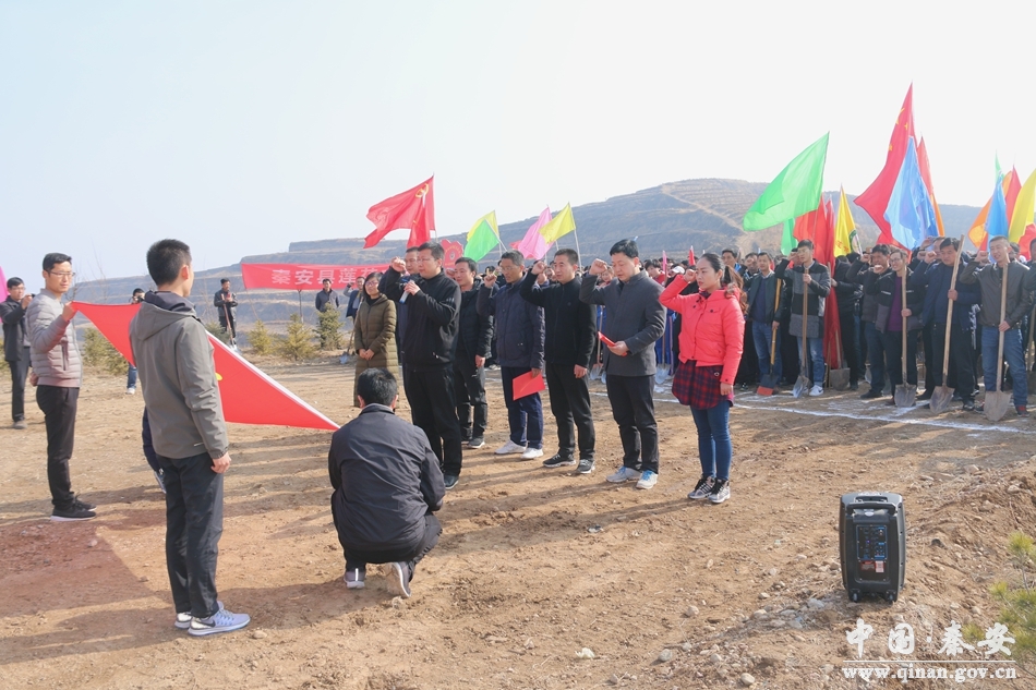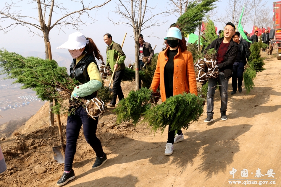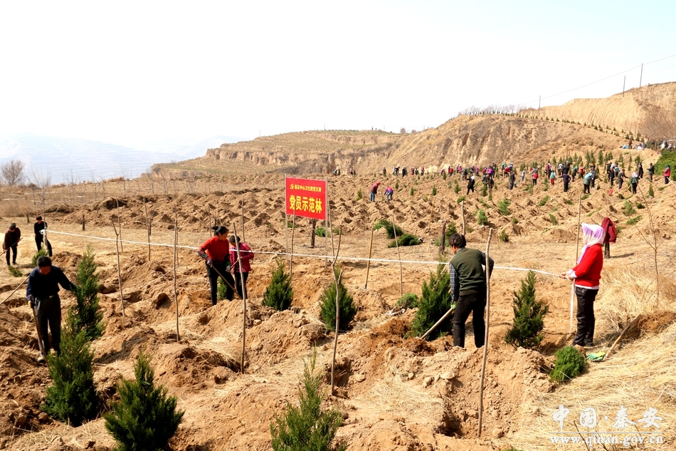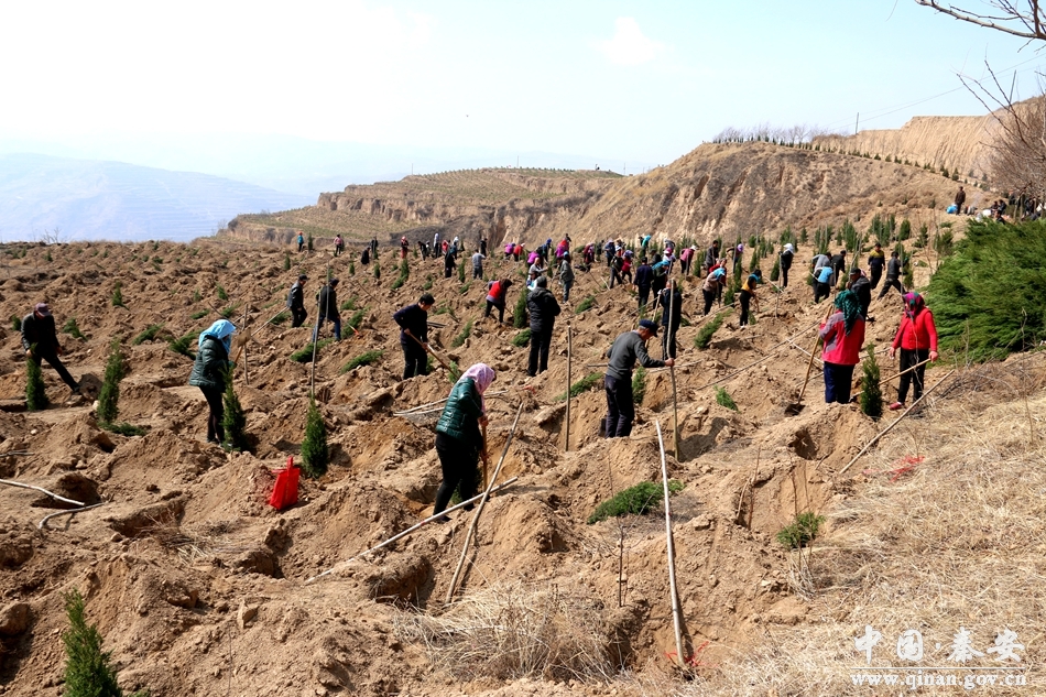 3月9日,記者在秦安縣蓮花鎮(zhèn)北山流域造林綠化現(xiàn)場(chǎng)看到,來自該鎮(zhèn)的干部職工與各村群眾組成的植樹造林隊(duì)伍正在這里挖坑放苗,培土澆水,山上到處人聲鼎沸,熱鬧非凡,一派熱火朝天的植樹場(chǎng)景。