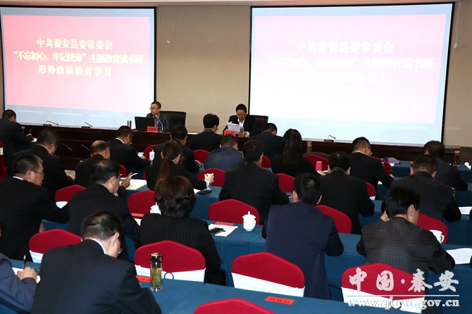 9月20日,秦安縣委常委會“不忘初心、牢記使命”主題教育讀書班進行形勢政策教育,邀請?zhí)焖形h校黨史與黨建教研室侯強強講師作了題為《學習貫徹新時代黨的建設總要求,努力建設世界上最強大的政黨》”的形勢政策教育專題輔導。
