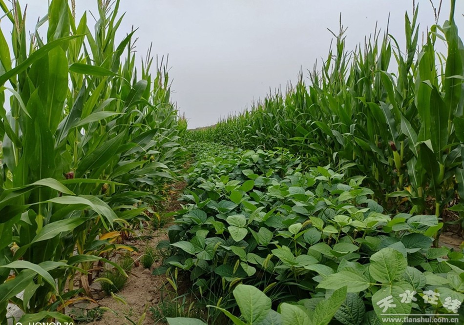 同樣,在五營(yíng)鎮(zhèn)大彎梁流域大豆玉米帶狀復(fù)合種植基地,一排排玉米葉片翠綠健壯,一壟壟大豆生機(jī)盎然,放眼望去,郁郁蔥蔥、長(zhǎng)勢(shì)喜人,豐收在望。