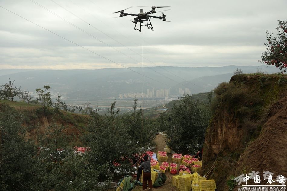 今年,千戶鎮(zhèn)的蘋果運(yùn)輸還迎來了“科技新幫手”。入秋以來降雨頻次增多,王嶺、周灣等村的果園多分布在坡地,雨后道路泥濘難行,傳統(tǒng)人力、三輪車運(yùn)輸效率低且易磕損蘋果,面臨“運(yùn)不出、儲(chǔ)不住”的難題。關(guān)鍵時(shí)刻,王嶺村村“兩委”干部主動(dòng)奔走,引入多架載重?zé)o人機(jī),搭建起“空中運(yùn)輸通道”。這些經(jīng)專業(yè)改裝的無人機(jī),配備防滑防抖運(yùn)輸艙,單次可承載90公斤蘋果,能精準(zhǔn)避開林間障礙往返運(yùn)輸,每天可運(yùn)蘋果近2噸,效率比傳統(tǒng)人力提升3倍以上,損耗率從15%降至5%以下。“往年雨天運(yùn)果歇好幾回,現(xiàn)在10分鐘一趟,省勁還保品相!”果農(nóng)王大叔贊不絕口,合作社李大姐也算得明白:“省了數(shù)百元日人工費(fèi),還能趕鮮入庫賣好價(jià)。”