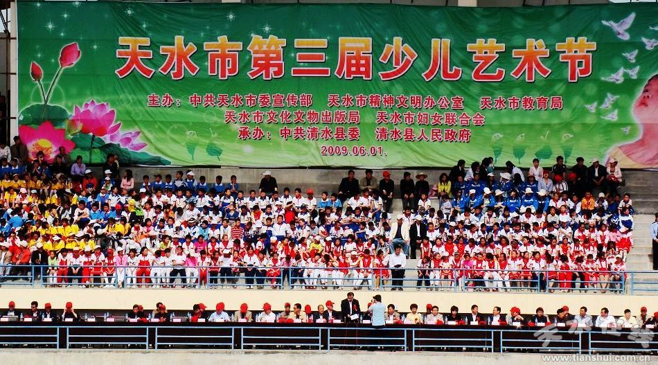 。ㄇ逅h委對(duì)外宣傳辦公室 攝影:劉海仙 牧云)6月1日,天水市第三屆少兒藝術(shù)節(jié)優(yōu)秀節(jié)目匯演暨“慶六一”活動(dòng)儀式在清水縣體育場(chǎng)隆重舉行。天水市委常委、宣傳部長(zhǎng)、市文明委副主任孫周秦,副市長(zhǎng)蕭菡,市關(guān)工委主任李世榮等領(lǐng)導(dǎo)出席儀式。