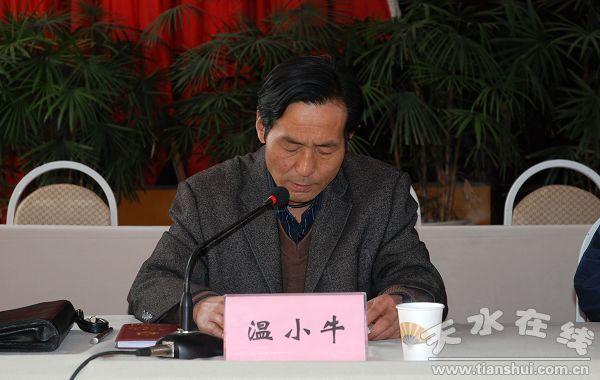 縣委辦公室副主任、縣委保密辦主任、保密局長(zhǎng)溫小牛作工作報(bào)告
