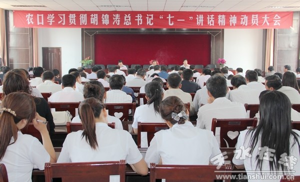 縣委副書記劉中秋作了重要講話,縣政府副縣長蔡俊杰主持會(huì)議,縣委農(nóng)工部部長竇明輝宣讀了中共清水縣委關(guān)于學(xué)習(xí)貫徹《胡錦濤總書記在慶祝中國共產(chǎn)黨成立90周年大會(huì)上講話》的安排意見。農(nóng)口全體干部職工參加了會(huì)議。