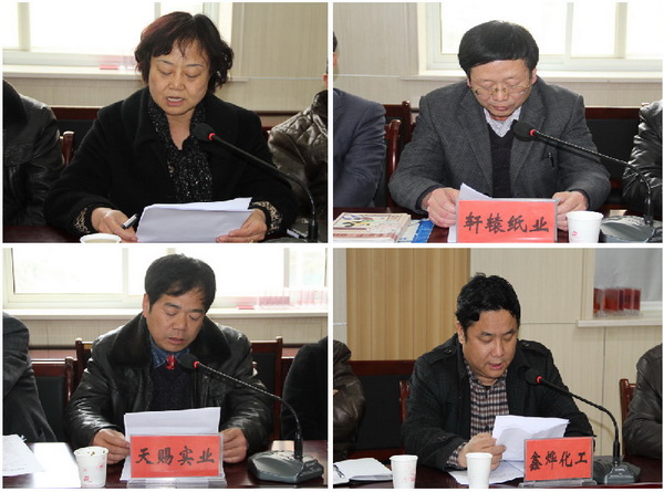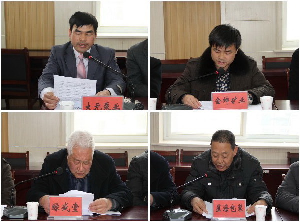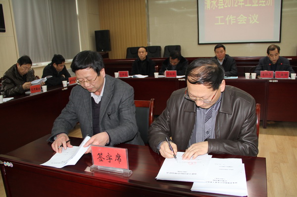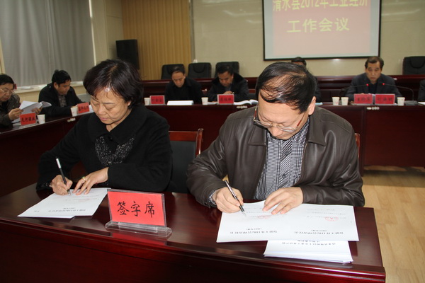 會上,縣委副書記、縣長馬越垠做了重要講話。副縣長蔡俊杰對2011年工作進行了回顧總結,對2012年重點工作進行了全面安排部署?h工信局局長范建明通報了當前重點工業(yè)企業(yè)運行情況;縣統(tǒng)計局局長王建興安排了企業(yè)統(tǒng)計直報工作;15戶重點企業(yè)負責人就企業(yè)運行情況和2012年工作打算做了匯報;縣財政局、環(huán)保局、質監(jiān)局、電力局、人行負責人做了表態(tài)發(fā)言;工信局與3戶重點工業(yè)企業(yè)簽訂了2012年節(jié)能減排目標責任書;與7戶規(guī)模以上企業(yè)簽訂了2012年工業(yè)生產計劃書。會議由縣委常委、組織部長剡海明主持召開。
